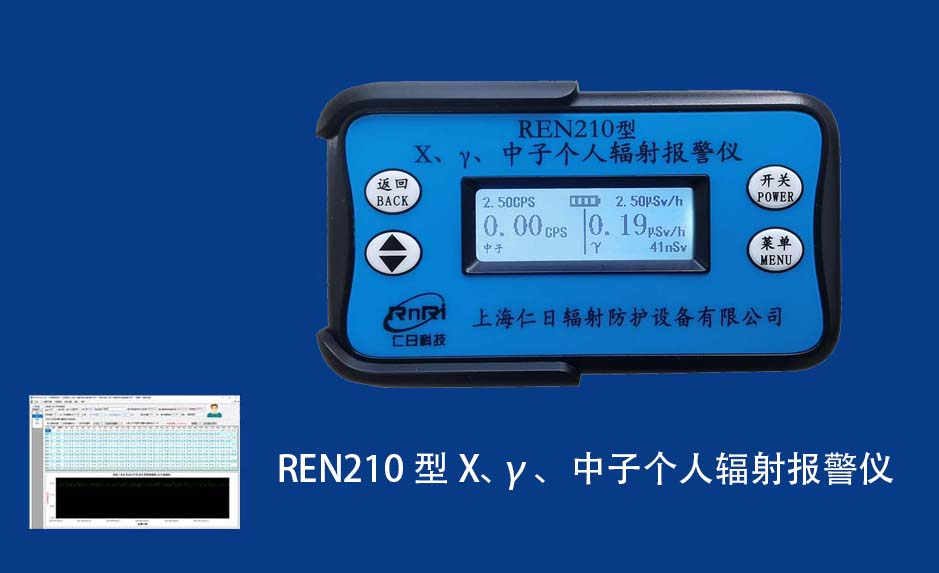 REN210型X、γ、中子個人輻射報警儀內置SiPM和鋰玻璃晶體組成中子探測器儀器,采用反照率方式探測中子射線,同時也能探測X、γ射線。因此它可同事監(jiān)檢測X、γ、中子三種射線。能顯示工作場所的劑量當量率和累積劑量,更換電池時,日期及累積數(shù)據能永久保存。可選配RenRiPersonal個人劑量管理軟件,該軟件可存儲多個人的歷史數(shù)據,能記錄日累積、月累積、年累積、輻照時長、計算平均劑量率、扣除或不扣除本底輻射,且以文字和圖譜的方式展現(xiàn)數(shù)據。廣泛應用于環(huán)保、化工、水泥、煤礦、土木工程、石油、醫(yī)院、疾控、進出口商檢、核電、加速器、機場、中子源庫和其他安檢、邊境控制海關檢測等領域中的工作人員進行個人安全防護監(jiān)測及放射性提示。